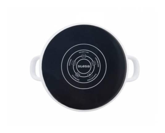 Izrađen je od visokokvalitetnog ugljičnog čelika debljine 0,8 mm. Premazan je s dva sloja emajla, iznutra i izvana. Debljina mu je čak 1,5 mm. Visokokvalitetni emajl i robusna konstrukcija čine ga izdržljivim i otpornim na oštećenja. Emajlirani lonac ravnomjerno raspoređuje toplinu. Otporan je na kiseline i koroziju. Ne sadrži nikal, što ga čini idealnim za alergičare. Bijela boja lonca daje mu klasičan izgled. Njegov veliki kapacitet omogućuje kuhanje za cijelu obitelj. Pogodan je za sve ploče za kuhanje. Emajl pomaže u očuvanju prirodnih okusa i aroma hrane. Lonac se može koristiti u pećnici do 220 °C (430 °F). Emajlirani lonci lako se održavaju u izvrsnom stanju. Može se prati u perilici posuđa.