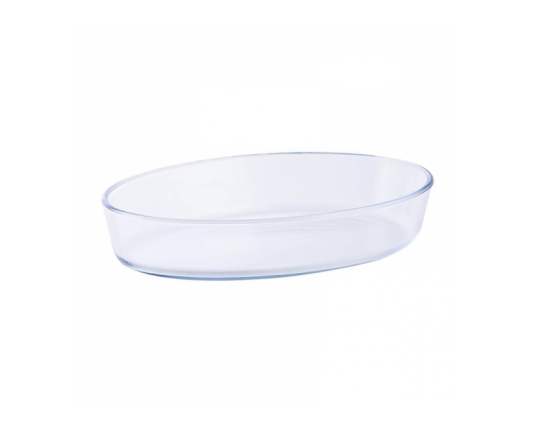 Ovalna posuda za pečenje od borosilikatnog stakla otporan na temperaturu -50*C do +500*C Sigurno u kontaktu s hranom Ne mijenja okus hrane ukupni kapacitet 2l, dužina 30 cm, visina 6,2 cm, širina 21 cm