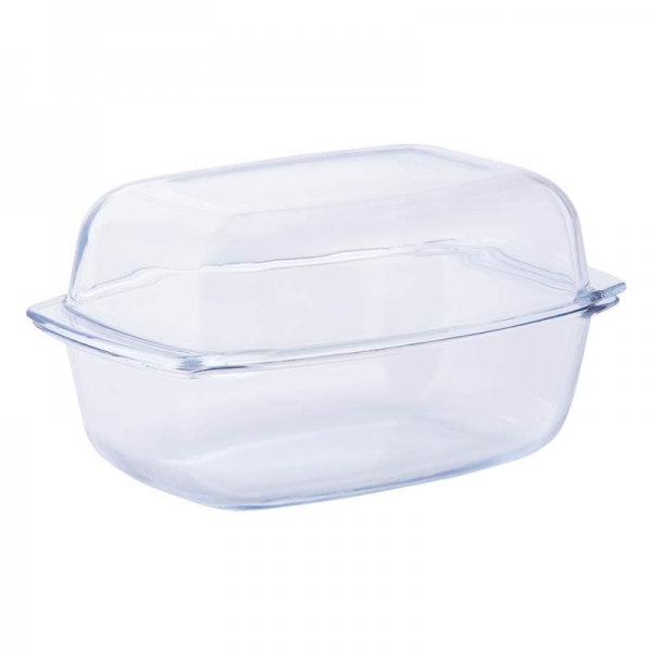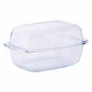 Pravokutna posuda za pećnicu s poklopcem od borosilikatnog stakla otporan na temperaturu -50*C do +500*C Sigurno u kontaktu s hranom Pogodno za bilo koju vrstu pećnice i štednjaka Kapacitet: 7l