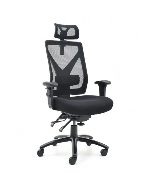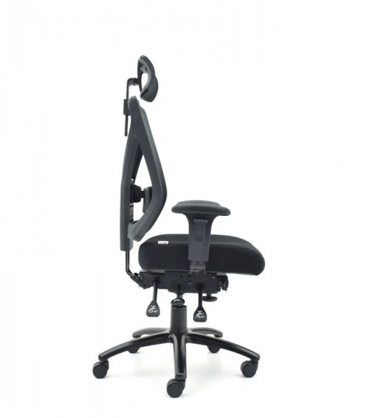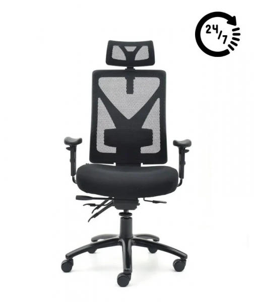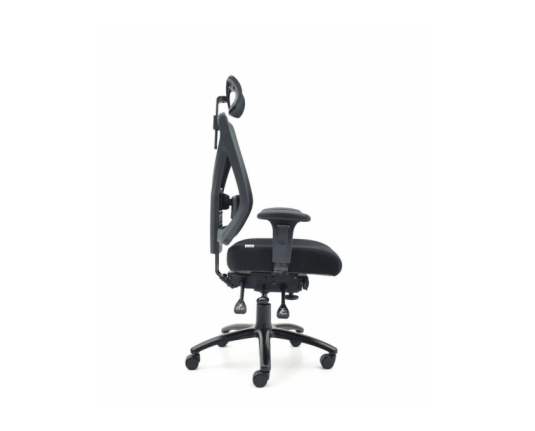 Uredska stolica Titan namijenjena je intenzivnoj upotrebi 24/7 i nudi savršenu kombinaciju ergonomije, udobnosti i trajnosti. Visoki mrežasti naslon je podesiv po visini i nagibu, čime pruža optimalnu potporu gornjem dijelu tijela. Sjedalo od vatrootporne pjene visoke gustoće (CA117) podesivo je po dubini i kutu, što osigurava dugotrajan komfor. Nasloni za ruke podesivi su po visini i obloženi PU materijalom za dodatnu podršku. Multifunkcionalni mehanizam uključuje funkciju ljuljanja, dok lumbalna potpora nudi podešavanje tvrdoće, visine i dubine, omogućujući individualno prilagođavanje za potpunu potporu kralježnici.