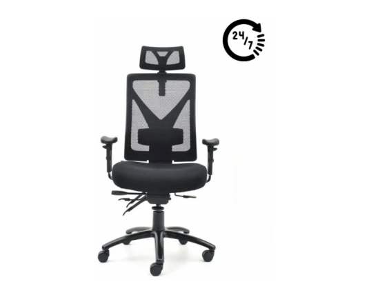 Uredska stolica Titan dizajnirana je za 24/7 upotrebu, jer kombinira vrhunski komfor, prilagodljivost i izdržljivost. S visokim mrežastim naslonom, podesivim funkcijama i nosivošću do 200 kg, idealna je za zahtjevne radne uvjete.