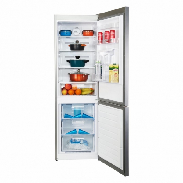 Heinner HCNF-V291XWDF+, No Frost Multicooling, Dozator vode, Energetski razred F, Ukupni kapacitet: 294 L, Kapacitet hladnjaka: 207 L, Kapacitet zamrzivača: 87 L, Elektroničko upravljanje s unutarnjim zaslonom, LED svjetlo, ECO funkcija, Funkcija brzog zamrzavanja, Tehnologija štita od smrzavanja (Otpornost na hladnoću), alarm otvorenih vrata, 3 staklene police hladnjaka, Kabrioletski odjeljak (hladnjak / voće i povrće), 3 ladice zamrzivač, držač jaja, ladica za kockice leda, Kapacitet smrzavanja: 5kg / 24h, Dimenzije (ŠxDxV): 59,5 x 60 x 186cm, Boja: Izgled od nehrđajućeg čelika s kromiranim ukrasom na ručki