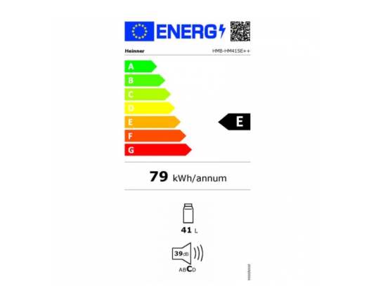 Mini-bar hladnjak Heinner HMB-HM41SE++,, klasa energetske učinkovitosti: E, ukupni kapacitet: 41L, mehaničko upravljanje s podesivim termostatom, 1 žičana polica, vrata s mogućnošću promjene smjera, dimenzije (ŠxDxV): 44 x 47 x 51 cm, boja: srebrna