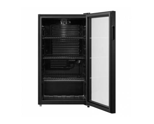 Heinner HBC-M93BKE hladnjak za pića, energetska klasa: E, ukupni kapacitet: 93L, kapacitet punjenja: 115 limenki (355 ml), mehaničko upravljanje s podesivim termostatom, LED svjetlo, 3 police, dimenzije (ŠxDxV): 47 x 44 x 84,5 cm, boja: Crna
