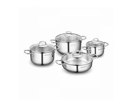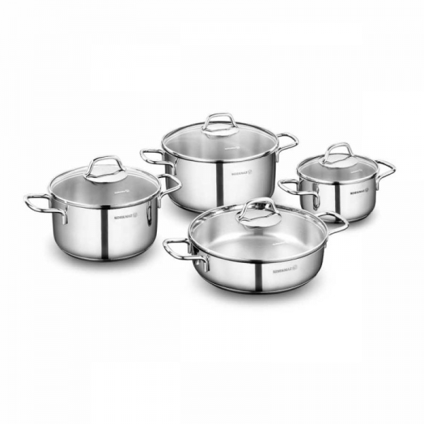 Vrhunsko kvalitetno posuđe svjetskog proizvođača Korkmaz. Primjena novih tehnologija u izradi posuđa, omogućava pripremu zdravih namirnica, energetsku uštedu i kraće vrijeme kuhanja što je u skladu s modernim i ubrzanim načinom života.Glavne karakteristike materijala u izradi Korkmaz posuđa su:Dno velike debljine pogodno za indukcijuNehrđajući čelik 18/10U setu se nalazi Posuda za umake 16×9 cm / 1,8 lLonac 20×11 cm / 3,5 lLonac 24×12 cm / 5,5 lTava 24×6,5 cm / 3 l.