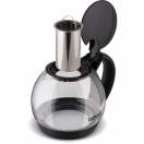 Stakleni čajnik pogodan je za sve vrste čajeva,Lonac za čaj i hladne napitke izrađen je od kvalitetne plastikeVrč koji sadrži sito od nehrđajućeg čelika za čaj, komade voća ili čajnog biljaopremljeno je plastičnim poklopcem za lak pristup čišćenju i punjenju spremnika.Materijal: plastika, stakloBoja: prozirna / crnaKoličina: 2 lVeličina: visina 16 cm