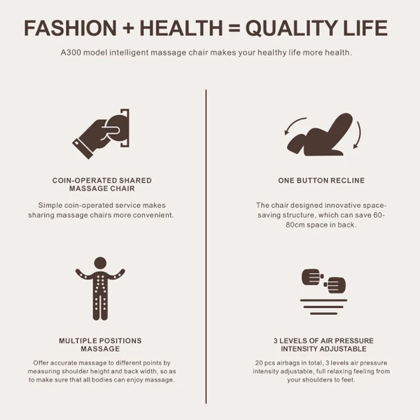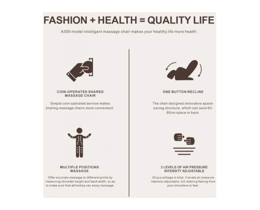 Idealno for poslovne spacee, čakalnice, telovadnice or wellness kotičke – enostavna monetizacija sprostitve.