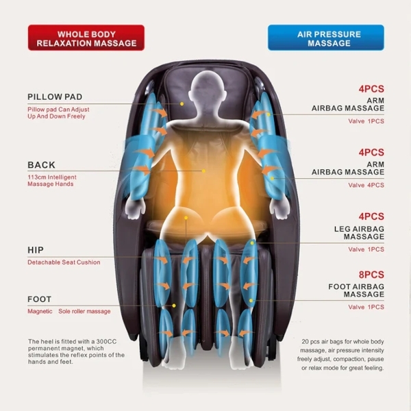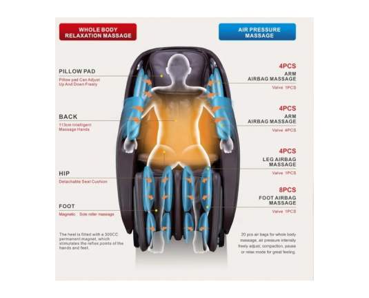 - Full Body – after napornem dnevu (celostna masaža with profesionalnim 2D mehanizmom, ki sprošča telo from glave to pet)