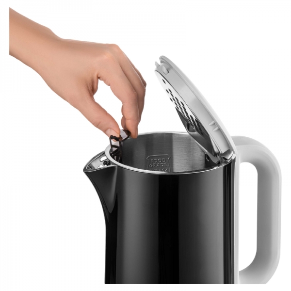 ELEKTRIČNO KUHALO S REGULACIJOM TEMPERATURE I DVOSTRUKOM STIJENKOM Ugrađen intuitivni LED zaslon: Prikazuje trenutnu temperaturu Za jednostavnu kontrolu programa Volumen od 1,5 litreUlazna snaga: 2.150 WElektronički podesiva kontrola temperature (40-50-60-70-80-90-100 °C)Tri načina rada: Zagrijavanje vode na 100 °C Održavanje odabrane temperature vode (40-50-60-70-80-90-100 °C)na 120 minuta Grijaće postolje od nehrđajućeg čelika s pokrivenom grijaćom spiralomPosebno oblikovan grlić sprječava kapanje i prolijevanje vodeSigurnosni mehanizam zaključavanja za maksimalnu sigurnostNehrđajući čelik visok kvalitete SUS 304 osigurava dug vijek trajanjaTrostruki sigurnosni sustav: Zaštita od pregrijavanja kada se uključi bez vode Automatsko isključivanje kada se makne s postolja Automatsko isključivanje kada se dosegne vrelište Također prikladno za korisnike slabijeg sluha (svjetlosni indikator uključenosti)Središnji STRIX priključak od 360°