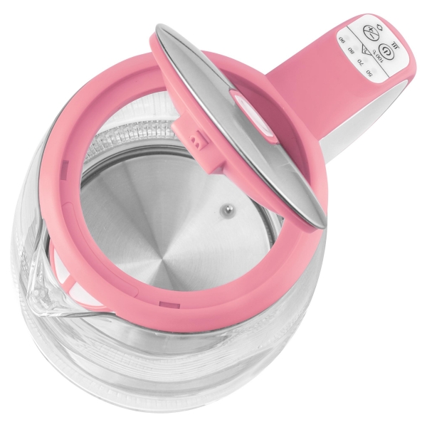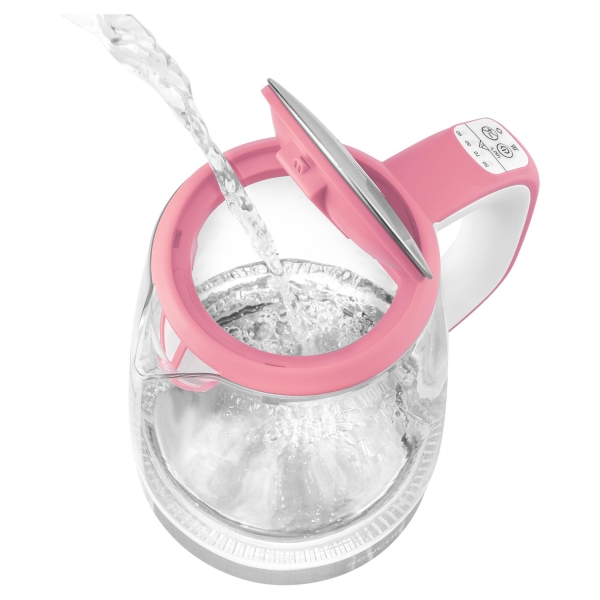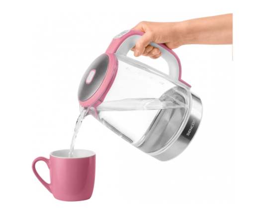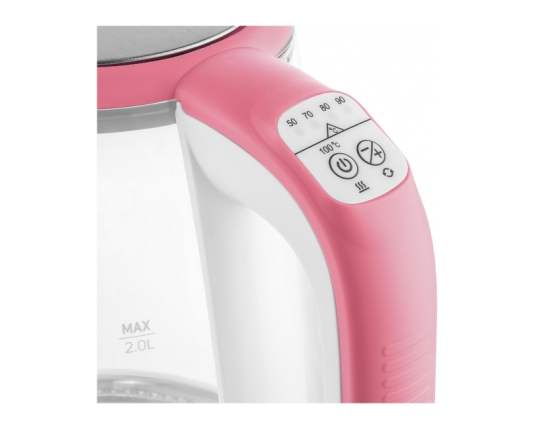 Kapacitet 2,0 l Održavajte temperaturu 30 minuta Ulaz snage: 2 200 W Postavke temperature vode: 50-70-80-90-100 °C DVA NAČINA RADA: Zagrijte vodu na 100 °C Zagrijte vodu na odabranu temperaturu (50-70-80-90-100 °C) i održavajte tu temperaturu Postignut zadani zvuk temperature Filtar za prljavštinu i kamenac Dvostrana oznaka razine vode Spremište kabela za napajanje u podnožju UNUTARNJE LED SVJETLO S PROMJENJIVIM POZADINSKIM OSVJETLJENJEM U BOJI KOJE OZNAČAVA: Zelena kada je temperatura postavljena na 50 °C Plava kada je temperatura postavljena na 70 °C Ljubičasta kada je temperatura postavljena na 80 °C Narančasta kada je temperatura postavljena na 90 °C Pogodno i za korisnike oštećena sluha (indikatorsko svjetlo za rad)Grijaća baza od nehrđajućeg čelika s natkrivenom spiralom za grijanje Poklopac se lako otvara pritiskom na gumb TROSTRUKI SIGURNOSNI SUSTAV: Zaštita od pregrijavanja kada je uključena bez vode Automatsko isključivanje kada se ukloni iz baze Automatsko isključivanje kada se dostigne točka vrenja DIMENZIJE I SPECIFIKACIJE Središnji STRIX priključak 360 ° Težina bez baze: 930 gNapon i frekvencija: 220 – 240 V ~ 50/60 Hz