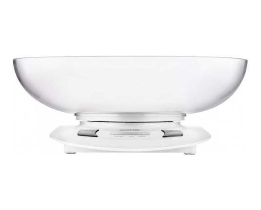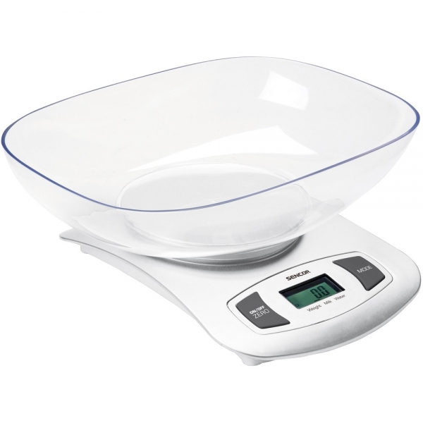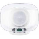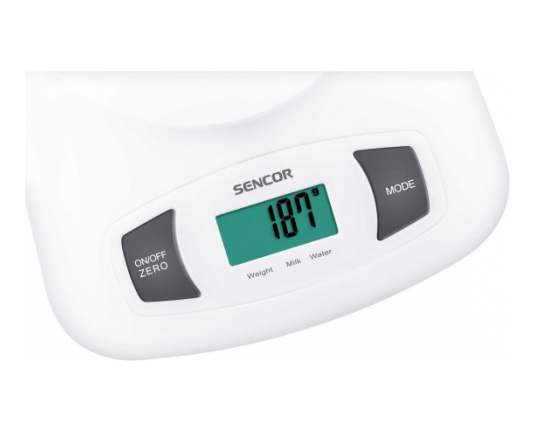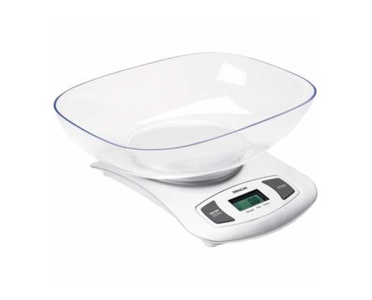 Praktična odvojiva plastična posudaVeliki LCD zaslon (40 x 19 mm)Visina znamenki na zaslonu: 14 mmVelike tipke za laganu kontroluVaže do 5 kg / osjetljivost 1 gTara (oduzimanje težine posude ili mogućnost postupnog ponovnog vaganja)Mogućnost odabira mjernih jedinica (g/ml/oz)Indikator ispražnjenosti baterije i preopterećenostiAutomatsko isključivanje kod mirovanjaPriloženi dodatci: 1x 3V CR2032 litijska baterijaZapremina posude za vaganje: 2000 mlDimenzije bez posude (širina x dužina x visina): 168 x 226 x 40 mmDimenzije s posudom (širina x dužina x visina): 266 x 244 x 100 mm