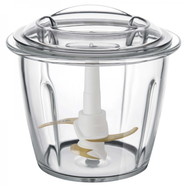 4 noža od titanija za smanjenju oksidaciju Velika staklena posuda zapremnine 1 000 mlprikladna za pranje u perilici Jednostavno ubacite sastojke i pritisnite tipku za početak sjeckanjaGumena podloga protiv proklizavanja za lakše rukovanjeKompaktan i ergonomski dizajnSigurnosni prekidačSnaga: 800 W