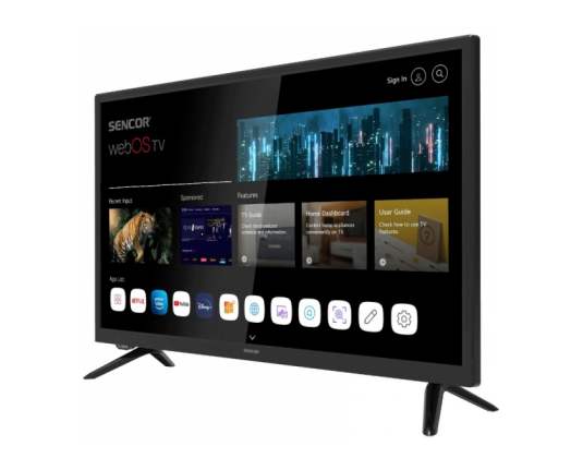 Smart TV Sencor SLE 24S801TCSB webOS SMART TV 22Wi-Fi i Bluetoothzaslon dijagonala 60 cm (24"), HD Spremna razlučivost DVB-T /T2/C/S/S2 tuneriSlika:Dijagonala zaslona 60 cm (24")HD Gotova razlučivost Razlučivost1366 x 768 piksela HDR 10 - 1,07 milijardi bojaD-LEDsvjetlina 180 cd / m²Vrijeme odziva11,5 msKut gledanja širine 178 ° / 178 °Digitalni filtar češlja (DCF) Dinamičko poništavanje buke (DNR) Prilagodljivi deinterlacing (DMDI)čipset i memorija: CPU: ARM Quad Core CA75 / CA55GPU: IMG BXE4ROM: 1 GB RAM-a: 8 GBS.M.A.R.T. sučelje:webOS SMART TV 22 HBOMAX, DISNEY+, Netflix, Prime Video, Youtube, Spotify, DeezerO2 TV aplikacija T-Mobile TV, Skylink CZ, Voyo, Televize Seznam, SledovaniTV, Pohádky, Lepší.TV, T-Mobile TV, Telly, Magio Go, Antik TV LG ThinQ s HbbTV (Hybrid Broadcast Broadband TV)aplikacijom za pametne telefone Povezivost:ugrađeni Wi-Fi modul (2,4/5 GHz)MiracastBluetooth 5.0 spodrškom za LG Sound Sync AI ThinQ - Glasovni asistent (Magic Controller nije uključen) Prijem signala: DVB-T2 (H.265, max. 1366 x 768/60p) DVB-T DVB-C DVB-S2 (H.265, max. 1366 x 768/60p)Skylink FastScan podešavanje*Zvuk: 2 × 8 Wizlazna snaga Dolby Digital PlusekvilizatorUlazi i izlazi:3× HDMI CEC (1 × ARC), AV in, RJ45, optički izlaz, 2x USB 2.0 (5 V ⎓ 0.5 A), izlaz za slušalice 3.5 mm HDMIpriključak CEC simplinkCI+sučelje Formati reprodukcije: Video: AVI, MP4, MPG, MKV, MOV, DAT, VOBAudio: MP3, M4A AACSlike: JPEG, JPG, PNGOstalo: OSD:EN, CZE, POL, HUN, SVK, GER, FRE, ITA, SPA, GRC, HRV, SRP, BUL, SLV, LIT, RUS, DUT...Elektronički programski vodič EPGTeletextSat, tajmerRoditeljski nadzorHotelski načinrada Sadržaj paketa: osnovni kontroler, vodič za brzi početak, postolje Snaga, potrošnja i dimenzije: Napajanje: AC ~ 110-240V, 50/60 HzDimenzije sa postoljem: 552 x 372 x 154 mm Dimenzije bez postolja: 552 x 330 x 82 mmTežina: 2,4 kgVESA:100 x 100