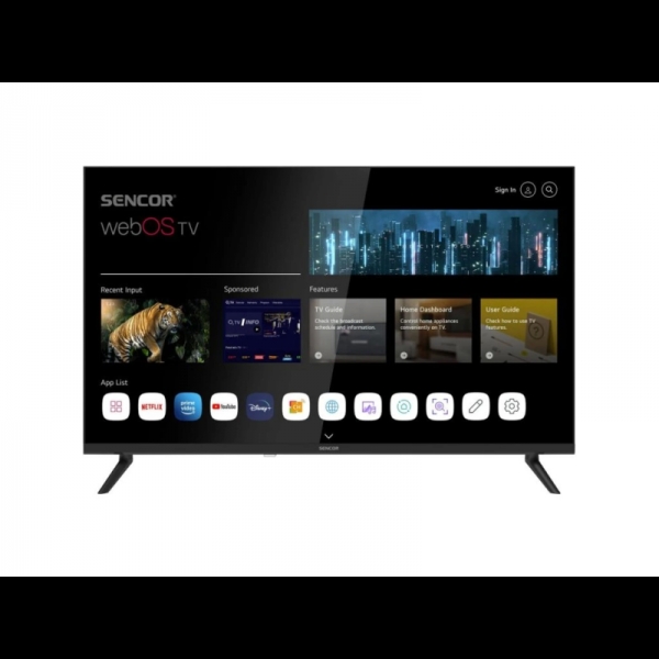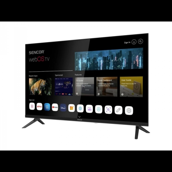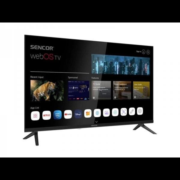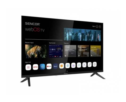 Sencor SLE 32S803B je 32-inčni (80 cm) LED SMART TV s webOS-om, koji nudi HD Ready rezoluciju 1366×768 i HDR10 podršku za poboljšanu dubinu boja. Nudi ugrađeni Wi-Fi i Bluetooth, Air Play i Miracast zrcaljenje, te integrirane DVB-T/T2/C/S/S2 tunere. Televizor uključuje više pametnih aplikacija i streaming servisa te je prikladan za male i srednje životne prostore gdje je potreban kompaktni pametni televizor. Ovaj webOS SMART TV kombinira poznatu pametnu platformu s HDR10 poboljšanjem boja i ključnim opcijama povezivanja poput Wi-Fi-ja, Bluetootha, Air Playa. Njegov LED panel omogućuje brzo odzivno vrijeme od 6 ms i širok kut gledanja od 178°, dok Dolby Digital Plus i audio izlaz od 2×8 W pružaju jasan zvuk za svakodnevno gledanje. Skup ugrađenih streaming aplikacija i više ulaza (3× HDMI, 2× USB, optički, RJ45, CI+, Mini AV) osigurava kompatibilnost s vanjskim izvorima i uslugama. Težina 4,22 kg Smart TV Da Vrsta ekrana LED Izvedba zvučnika 16 W Kvaliteta slike HDR10 Dijagonala u inčima 32 " Dijagonalno u cm 80 cm LED pozadinsko osvjetljenje D-LED Vrijeme odziva 6 ms Zemaljski TV tuner (DVB-T) DVB-T2 Stand Bočne noge Kabelski TV tuner (DVB-C) DVB-C Satelitski tuner (DVB-S) DVB-S2 USB 2 x Reprodukcije s USB-a Video/Fotografija/MP3 Operativni sustav WEBOS Kut gledanja 178°/178° WiFi INTEGRIRANO Povezivanje slušalica Da Broj HDMI uređaja 3 Visina 42,3 cm Širina 71,9 cm Dubina 8 cm Boja BLACK Dimenzije bez stalka 71,9 x 42,3 x 8 cm