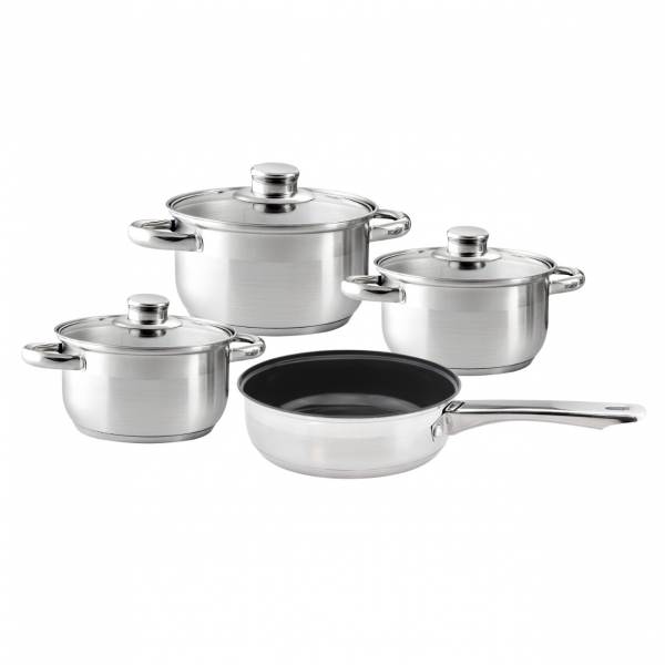 Altom Design set posuđa VITO 7 elemenata - za sve vrste štednjaka: Promjer tave 22 cm X 6,5 cm (bez poklopca) s neprianjajućim premazom lonci sa staklenim poklopcima: promjer 14 cm - kapacitet 1,3 L, promjer 16 cm - kapacitet 1,9 L, promjer 22 cm - kapacitet 4,7 L