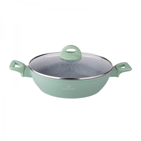 · Tijelo je izrađeno od lijevanog aluminija, zahvaljujući kojem savršeno provodi toplinu · Valdinox Sabio tave imaju debele zidove, zahvaljujući kojima Posuđe se brzo zagrijava i Držite toplinu dugo vremena · Valdinox Sabio posuđe osigurava ravnomjernu raspodjelu topline, koja sprječava deformaciju DNA · Unutarnji neprijanjajući premaz inspiriran izgledom i čvrstoćom kamena je siguran za zdravlje , jer ne sadrži teške metale i opasne kemikalije, hrana koju pripremate ne lijepi se za tavu i ne gori · Vanjska ljuska s mat teksturom Lako se čisti korištenje mekih krpa i malih količina blagih deterdženata. Ne preporučuje se za uporabu u perilicama posuđa · Ručke i ručke prekrivene su ugodnim i baršunastim silikonom na dodir "Soft touch", koji štiti vaše ruke od opeklina · Valdinox Sabio posuđe možete koristiti na svim vrstama štednjaka, uključujući indukciju