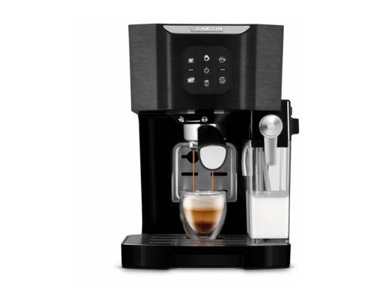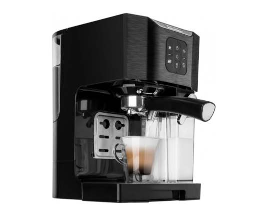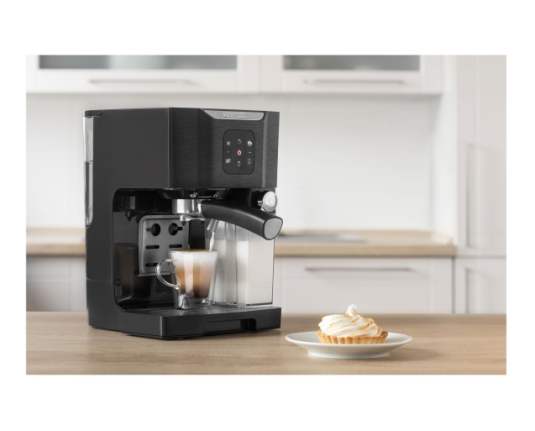 20 Bar pumpa za savršenu kavu Sustav grijanja bojlera s termoblokom Super brzo predgrijavanje Sustav za intenzivni okus Espresso s jednim dodirom, dvostruki espresso, program za kapučino, Latté. Prozirna posuda za mlijeko s odvojivim uređajem za pjenjenje mlijeka za jednostavno čišćenje Filter od nehrđajućeg čelika za 1 i 2 šalice Toplija ploča za šalice Funkcija memorije veličine kave Elektronski kontroler PCB-a kako bi se osigurala točnija temperatura pića Poklopac od nehrđajućeg čelika za espresso kavu Automatska funkcija samočišćenja Odvojivi pladanj za jednostavno čišćenje Visoka visina kupa idealna je za šalice za kavu Prenosivi 1,4-litarski spremnik za vodu uvijek osigurava svježu vodu za vašu ukusnu kavu Indikator volumena vode Pokazatelj uklanjanja kamenca Program za uklanjanje kamenca Prekidač ON / OFF s indikatorskim svjetlom Anti-slip Feet Dodatna oprema: Držač filtra, mjerni oblog, 2 filtra (za 1 i 2 čaše) Ulazna snaga: 1,450W Razina buke maks. 70dB Duljina kabela za napajanje: 95cm Dimenzije (širina × dubina × visina): 309 × 229 × 355 mm Težina: 4.3kg Napon i frekvencija: 220–240V, 50Hz