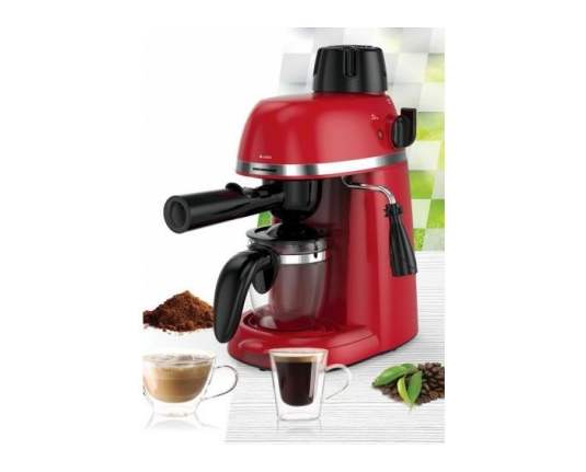 Tlak od 3,5 bara Filter od nehrđajućeg čelika Kapacitet: 240 ml Karakteristike Kotao od legure aluminija Opcije : espresso i cappuccino Staklena vrč Tehnički podaci Snaga: 800W Napon: 220-240 ~ 50-60Hz Za espresso aparate preporuka je koristiti srednje fino mljevenu kavu ! Fino ili ekstra fino mljevena kava može začepiti čeličnu mrežicu od aparata.