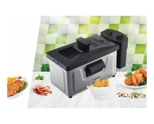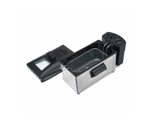 Friteza HEINNER HDF-1800SS Snaga: 1800W Kapacitet ulja od 3L Maksimalni kapacitet za krumpir 500g Tajmer 30 min Podesivi thermostat Emajlirani spremnik ulja Maksimalna temperatura 190 °C Kućište od nehrđajućeg čelika Indikatorsko svjetlo