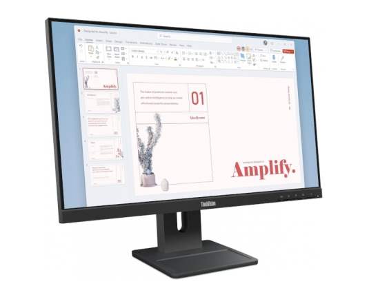 yestana card Lenovo ThinkVision E24-40 Lenovo ThinkVision E24-40 je 23,8-palčni FHD monitor, zasnovan for comfortable and produktivno parto. with IPS screenom, širokimi vidnimi koti and natančnimi Colourmi je idealen for pisarniška opravila, analizo Yesta and spletne sestanke. thin frame allows withouthibno parto with več screeni, prilagodljivo stand pa poskrbi for ergonomically izkušnjo. with nizko modro svetlobo and without blinking protects vaše oči also at the Yesljši uporabi. Features: Size screen: 23,8" (60,5 cm) tip screen: raven Resolution: 1920 X 1080 (FHD) WLED tip matrike: IPS matrix brightness: 250 nitov contrast: 1300:1 speed osveževanja: 100 Hz viewing angle: 178°(H) / 178°(V) response time: 4ms (Extreme mode) speakers 2 x 2W matt adjustablest (višin): Yes adjustablest (tilt): Yes adjustablest (pivot): yes VESA 100 x 100 mm withoutframeni dizajn Connections & Expansion: 1x HDMI 1.4 1x DP 1.2 1x VGA added: 1x HDMI cable (v2.1) 1x navodila for uporabo Fizične Features: Dimensions: 539.8 x 44.0 x 325.7 mm Weight: 4,5 kg Colour: črn