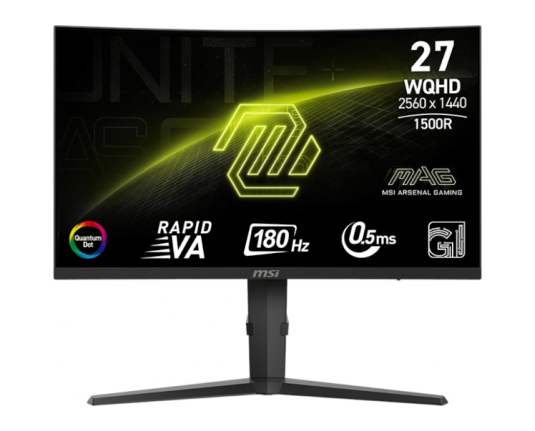 Zaslon MSI MAG 275CQRF QD E2 / 27" / WQHD / Rapid VA / 180Hz / 0.5ms (GtG) / ukrivljen / črn - nastavljiv po višini - PD 15W