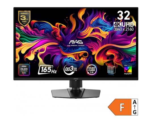 yestana card MSI MAG 322UP QD-OLED E16 je premijski 32-palčni monitor namenjen kupcem, ki želijo izstopajočo vizualno izkušnjo and zanesljivo rešitev for zahtevna okolja. QD-OLED technology prinša extremely globino slike, žive colour and popoln contrast, zato je monitor odlična izbira tako for gaming rešitve višjega razre yes kot also for kreativno parto, predstavitve and demonstracijske spacee. Sodoben, minimalističen dizajn se without Weightv vključi into vsako okolje. Monitor je zasnovan with mislijo on udobje uporabnika and vsakodnevno uporabo, at the čemer zagotavlja tekočo, prijetno and vizualno prepričljivo izkušnjo. MAG 322UP QD-OLED E16 predstavlja zanesljivo izbiro for vse, ki iščejo kombincijo prestiža, Capacityi and kakovosti priznane znamke MSI. Features: Size screen: 31,5" (80,0 cm) tip screen: raven Resolution: 3840x2160 (UHD) tip matrike: QD-OLED brightness: 450 nitov (HDR) HDR support: VESA DisplayHDR True Black 400 contrast: 1500000:1 speed osveževanja: 165Hz viewing angle: 178°(H) / 178°(V) response time: 0,03 ms (GTG) adjustablest (tilt): -5° ~ 15° adjustablest (swiivel): -30° ~ 30° adjustablest (pivot): -10° ~ 10° adjustablest (višin): 0 ~ 110 mm VESA 100 x 100 mm DYNAMIC REFRESH RATE technology: NVIDIA G-SYNC kompatibilen AMD FreeSync Premium Pro Connections & Expansion: 2x HDMI 2.1 (UHD@165Hz) 1x DisplayPort 1.4a (HBR3) 1x Type-C (DP alt.) 15W PD 1x Headphone-out Fizične Features: Dimensions: 719.1 x 69.3 x 418.3 mm (without stand) Weight: 7,7 kg Colour: črn